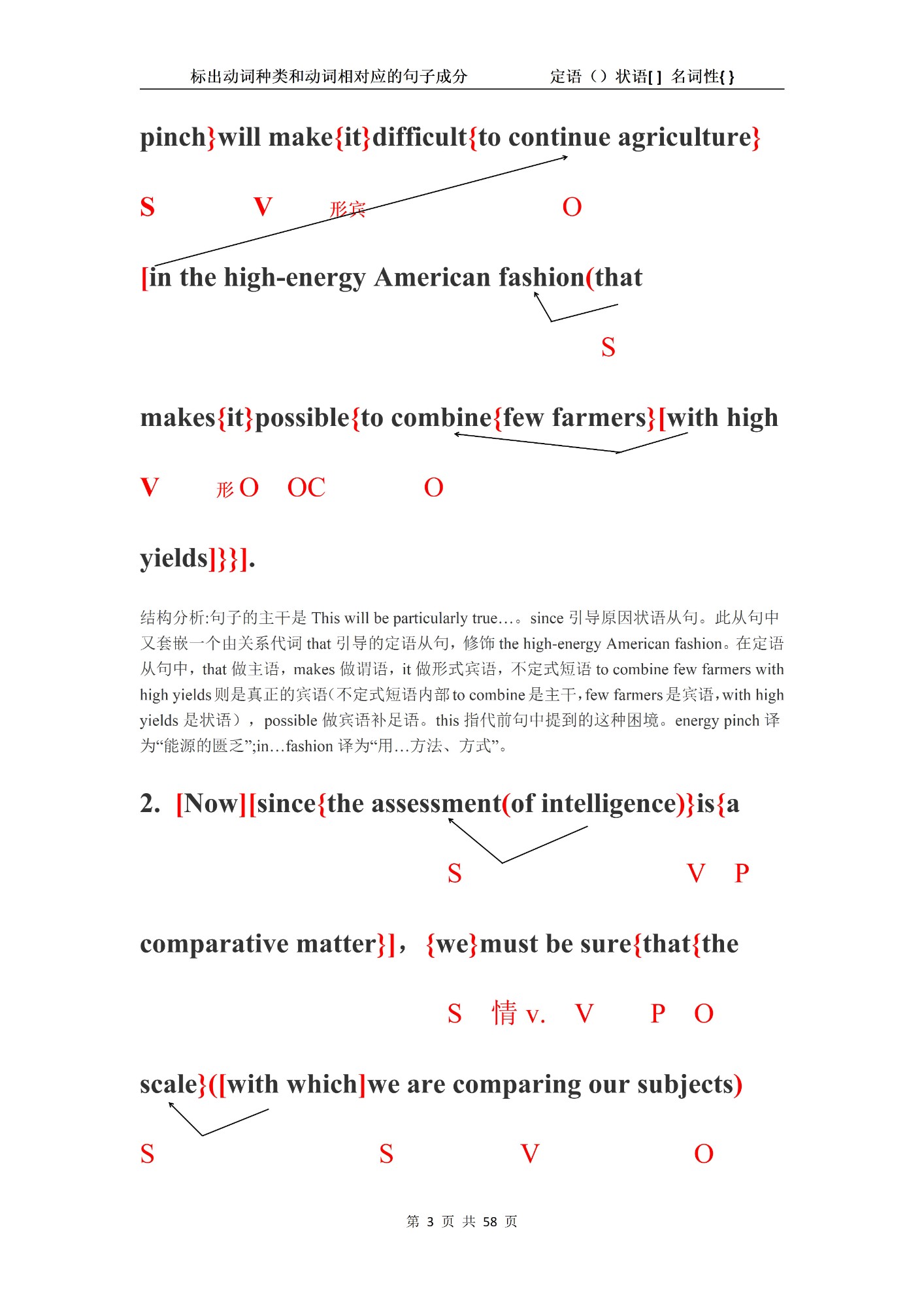 读不懂句子,可以分析句子结构。句子结构有自身的规律,找到了规律,将句子分析开来,就读懂了。句法分析是从语言本身的规律的出发,再结合上下文具体运用。英语语法的本身的规律可以用三句话来表示:1, 每个词都有词性;2, 每句话都有动词(实意动词或系动词)3, 每句话都必须符合五个基本句型中的一个。